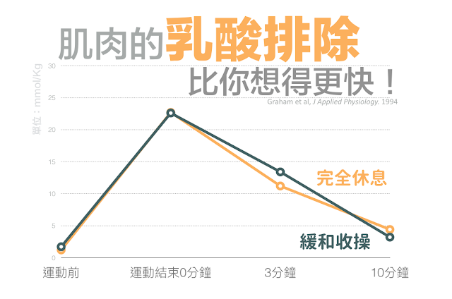 (註2:上述研究都是針對有氧運動所做,目前我還沒有看到重量訓練後的乳酸清除的數據。不過,我猜測重量訓練與有氧運動的的乳酸清除率應不致相差太多。)
