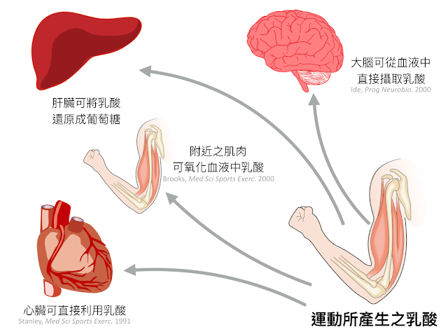 - 乳酸未必會造成運動時的疲勞,部分研究甚至認為乳酸能促進運動表現。